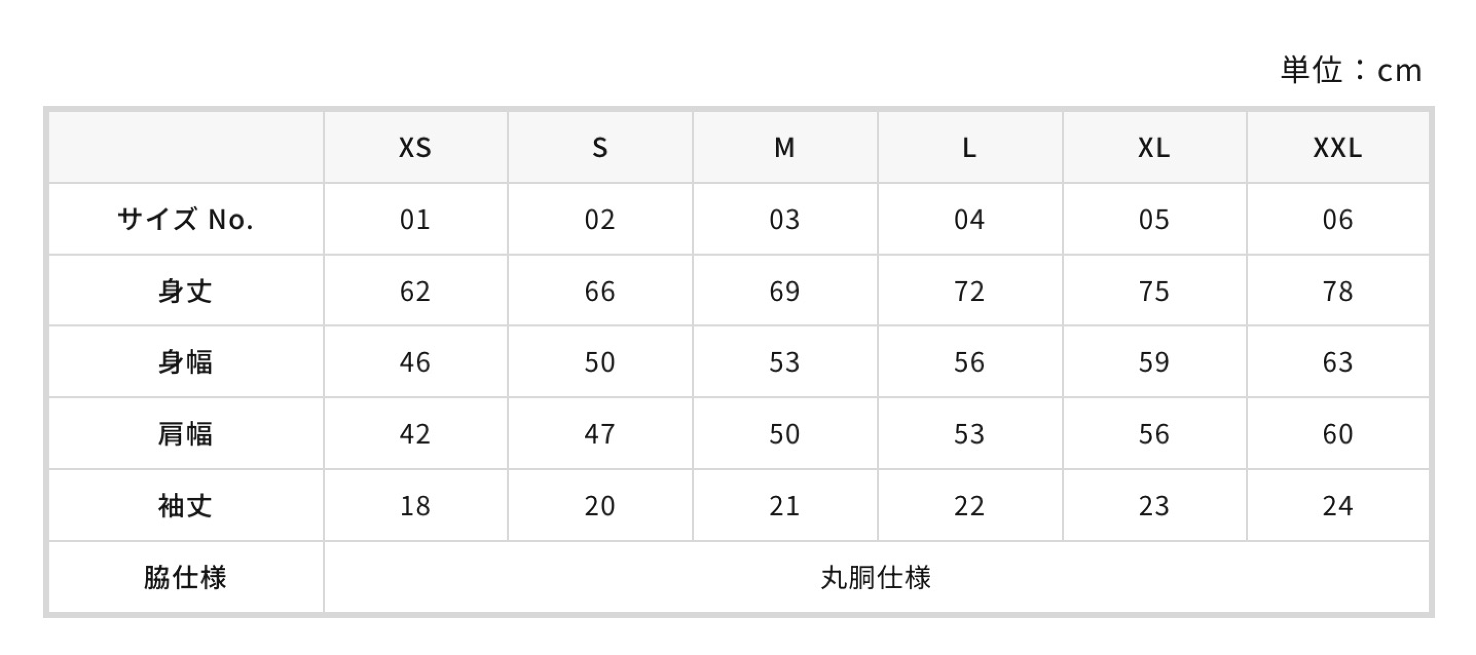 6サイズ(XS〜XXL)